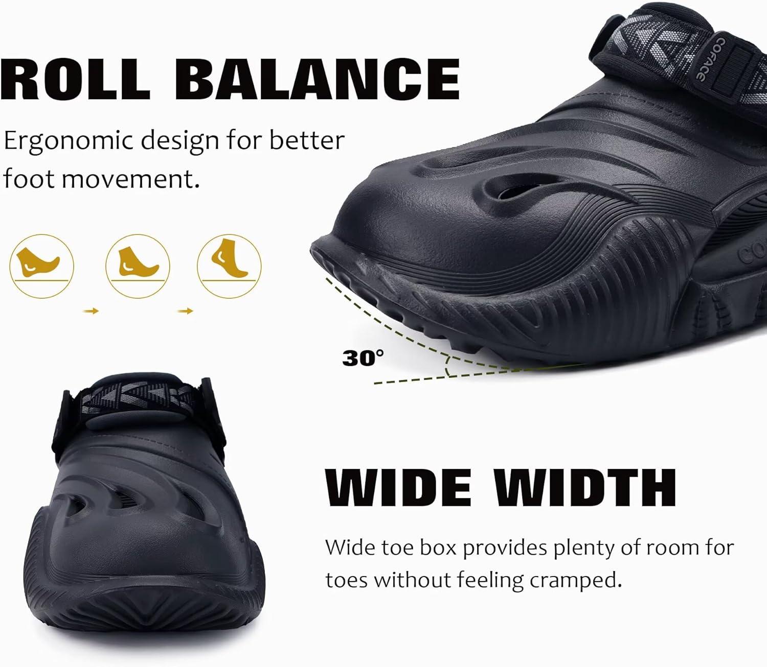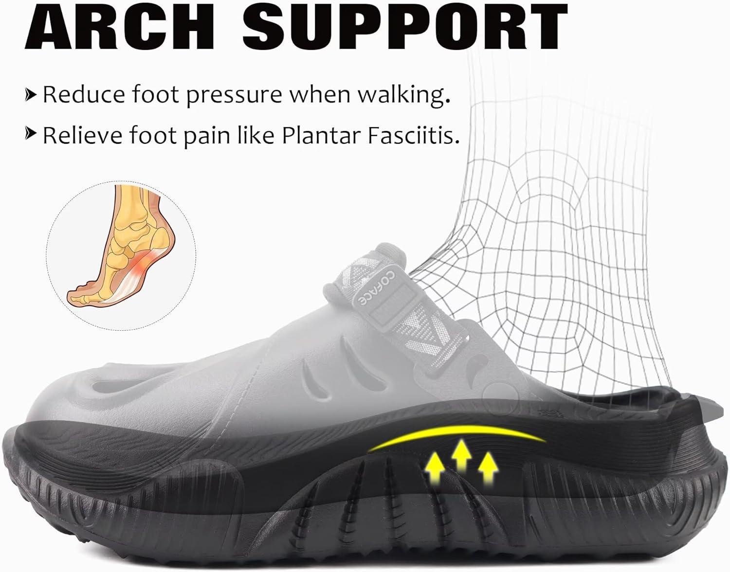 COFACE Mens Recovery Clogs Comfortable Walking Thick Cushion Sandals Sport Casual Orthopedic Mules with Plantar Fasciitis Arch Support(Black)