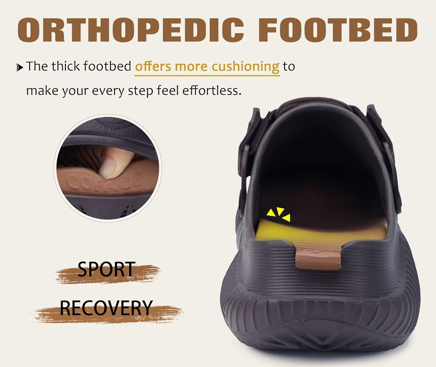 COFACE Mens Recovery Clogs Comfortable Walking Thick Cushion Sandals Sport Casual Orthopedic Mules with Plantar Fasciitis Arch Support(Brown Khaki)