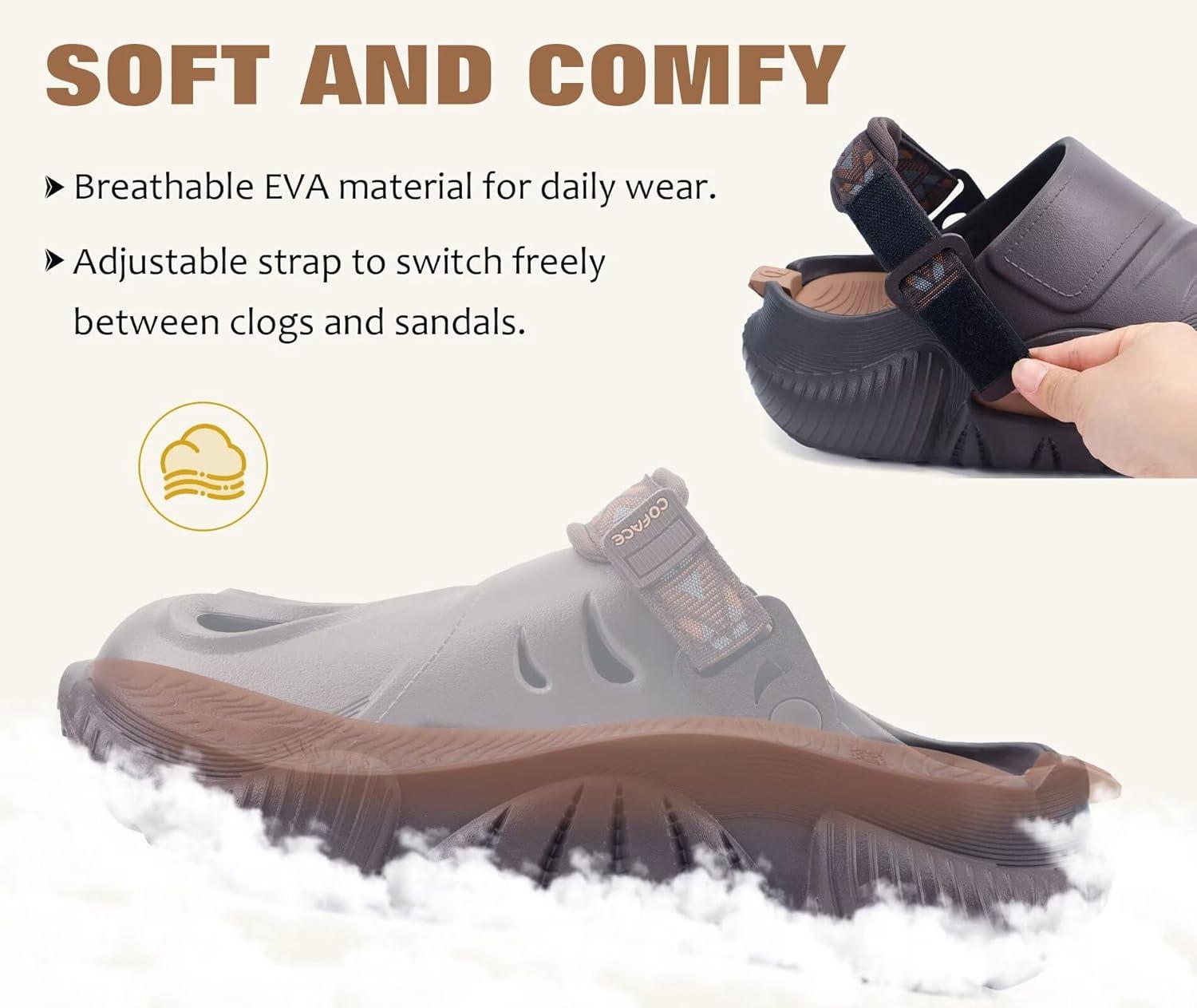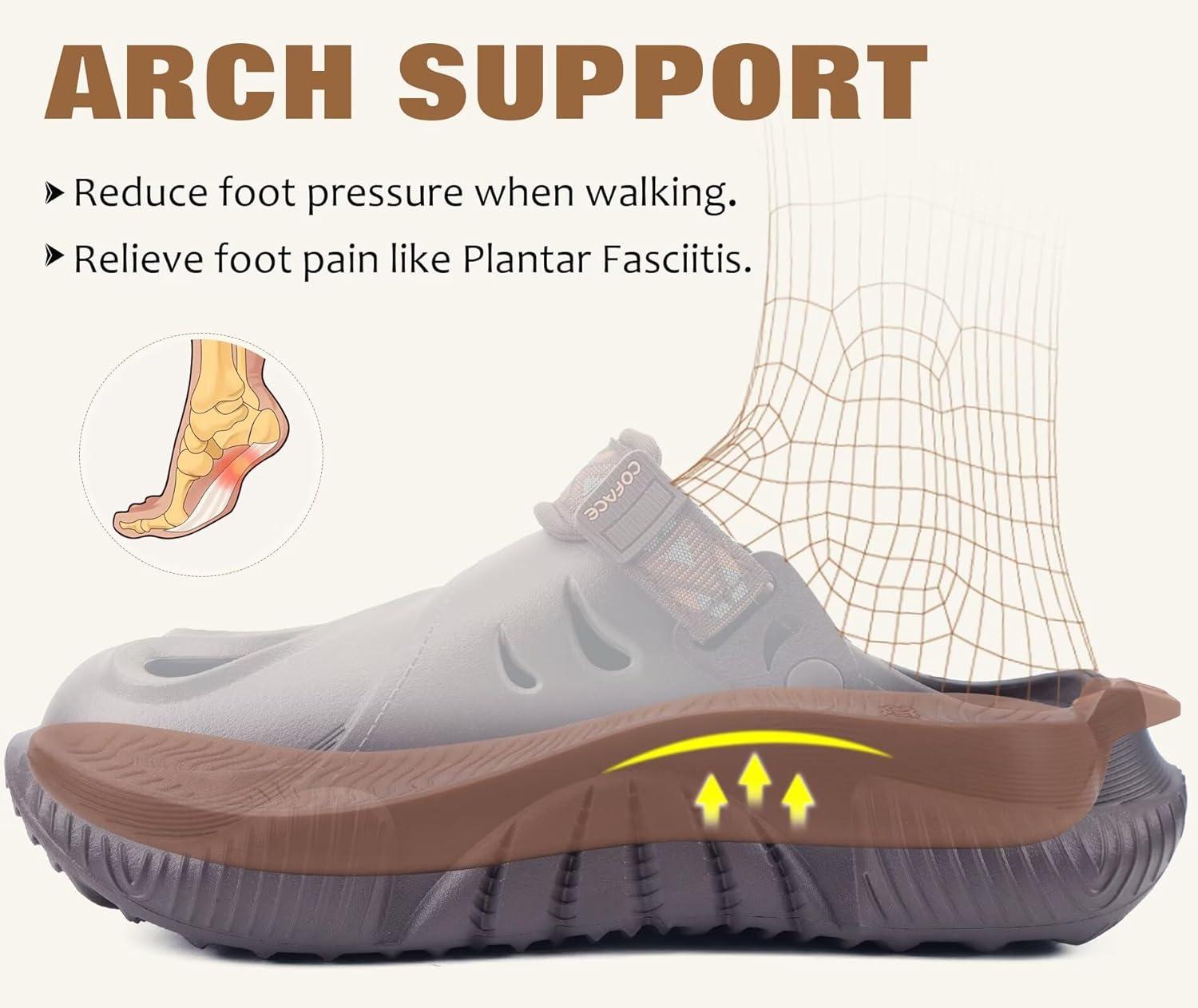 imageCOFACE Mens Recovery Clogs Comfortable Walking Thick Cushion Sandals Sport Casual Orthopedic Mules with Plantar Fasciitis Arch SupportCamo Beige Brown