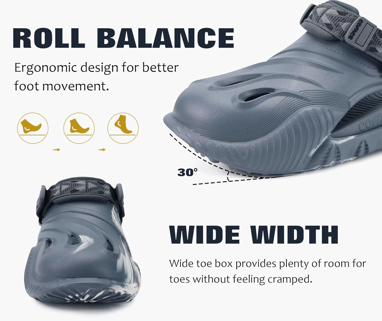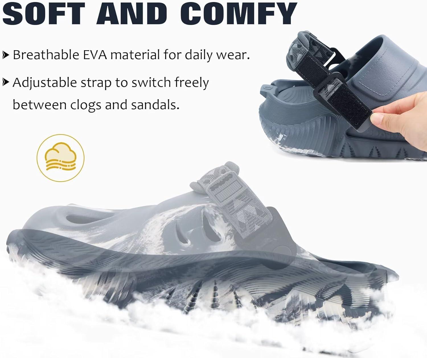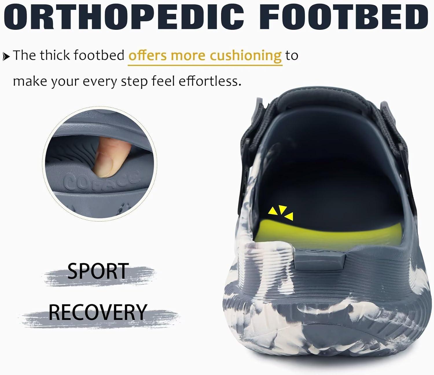 COFACE Mens Recovery Clogs Comfortable Walking Thick Cushion Sandals Sport Casual Orthopedic Mules with Plantar Fasciitis Arch Support(Camo Grey White)