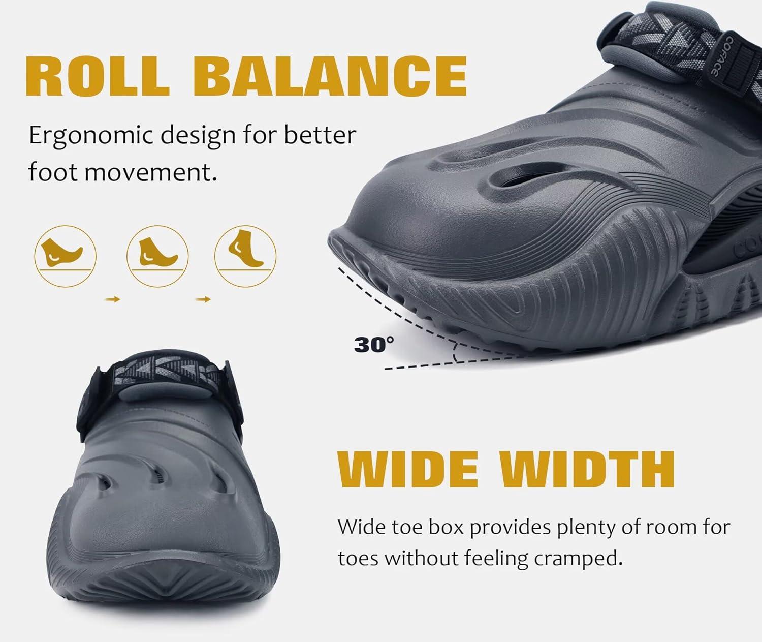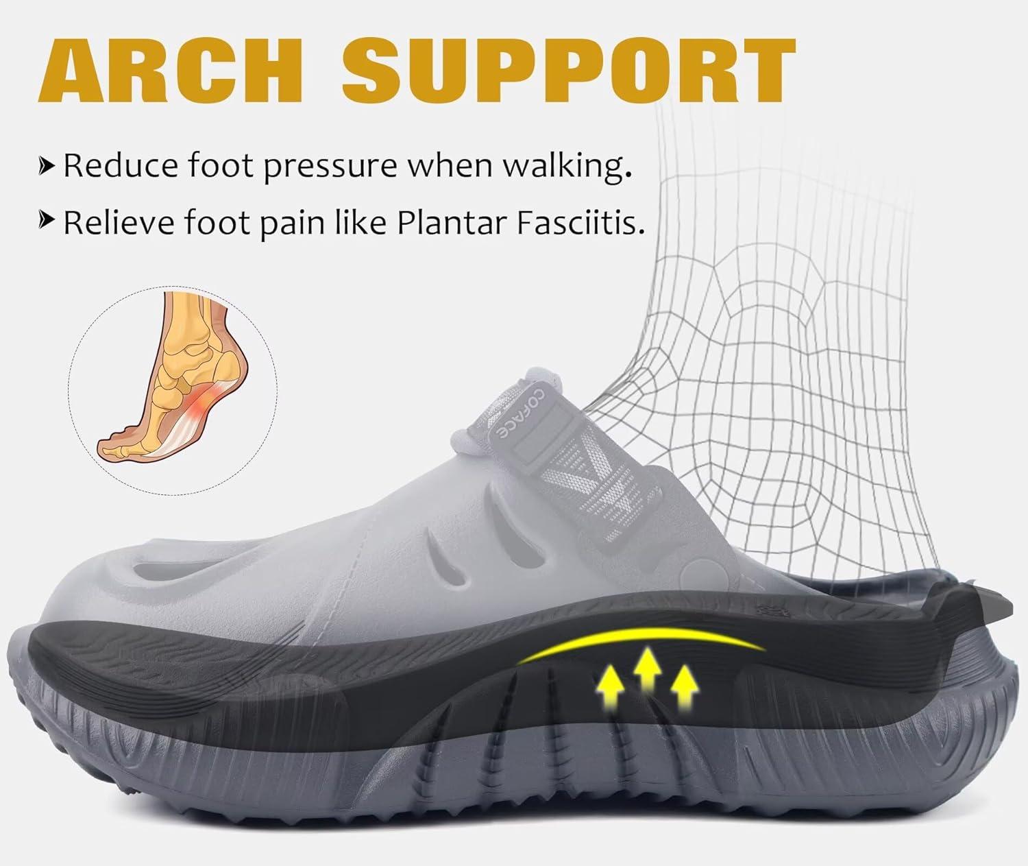 COFACE Mens Recovery Clogs Comfortable Walking Thick Cushion Sandals Sport Casual Orthopedic Mules with Plantar Fasciitis Arch Support(Grey Black)