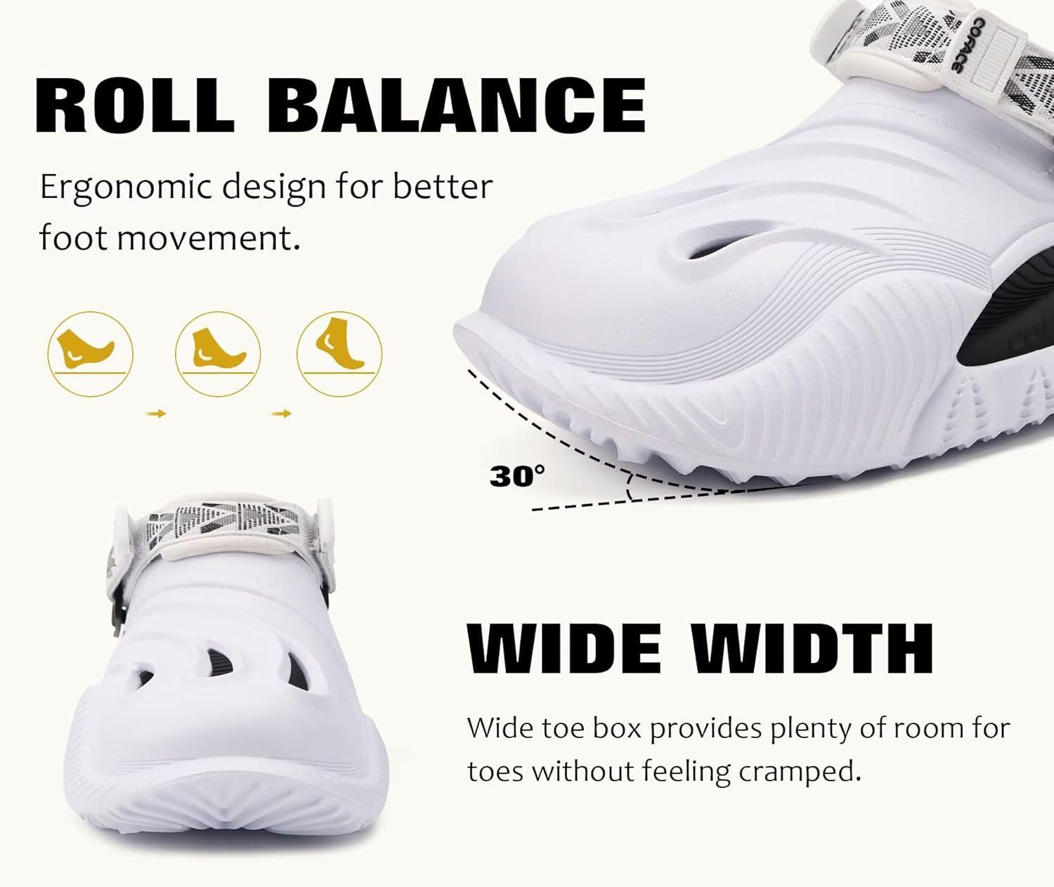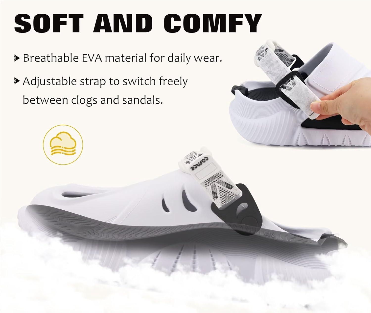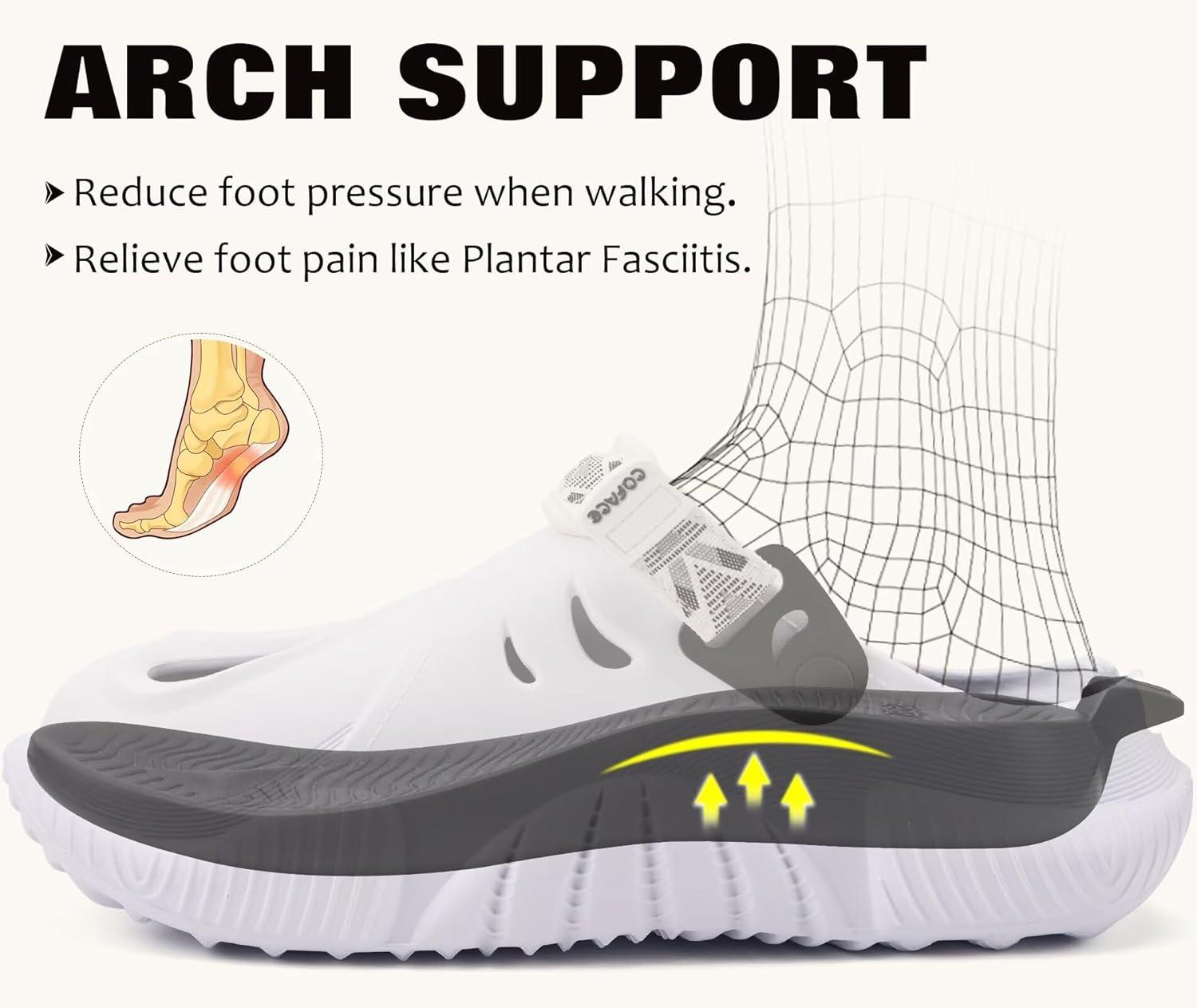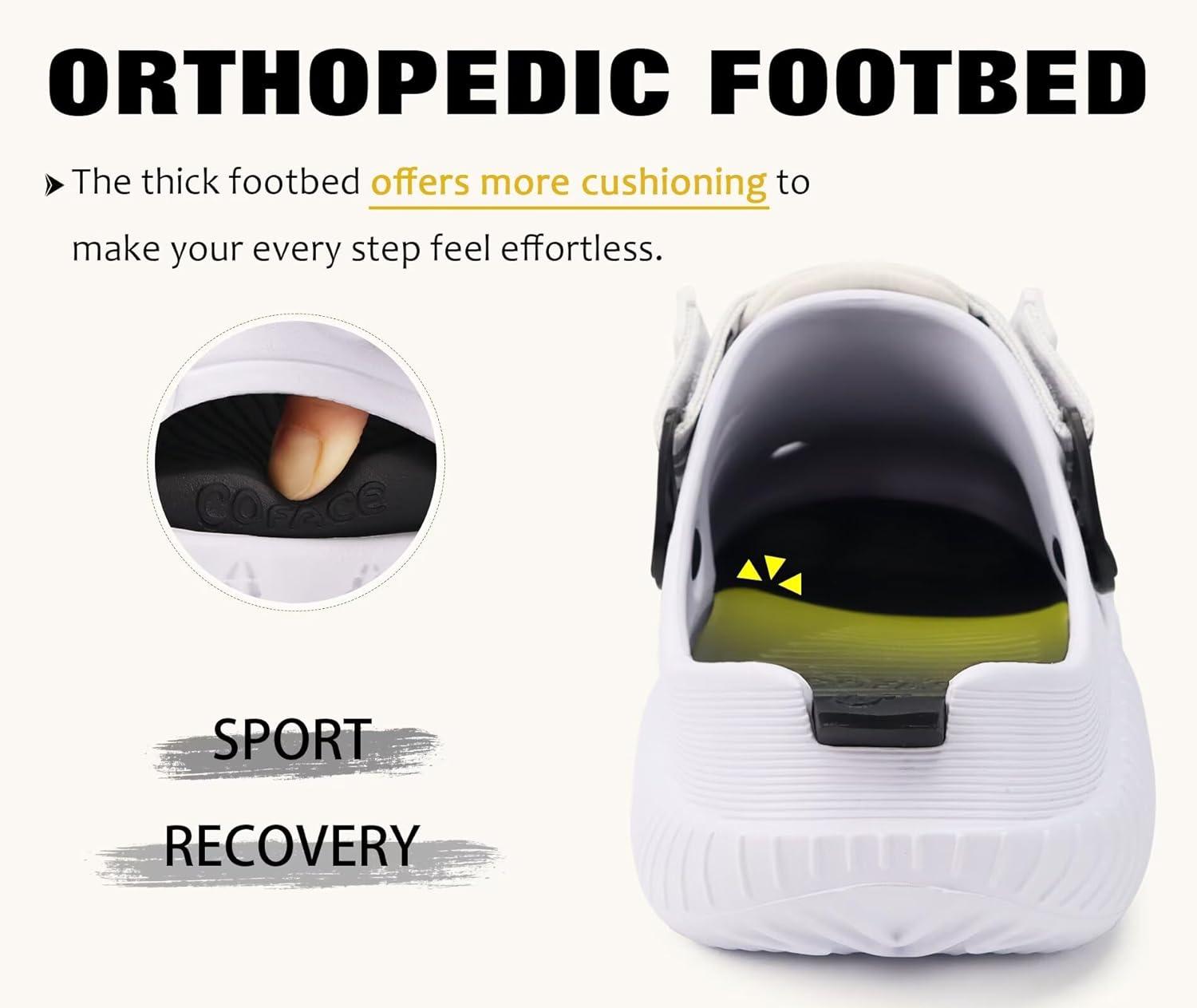 COFACE Mens Recovery Clogs Comfortable Walking Thick Cushion Sandals Sport Casual Orthopedic Mules with Plantar Fasciitis Arch Support(White Black)