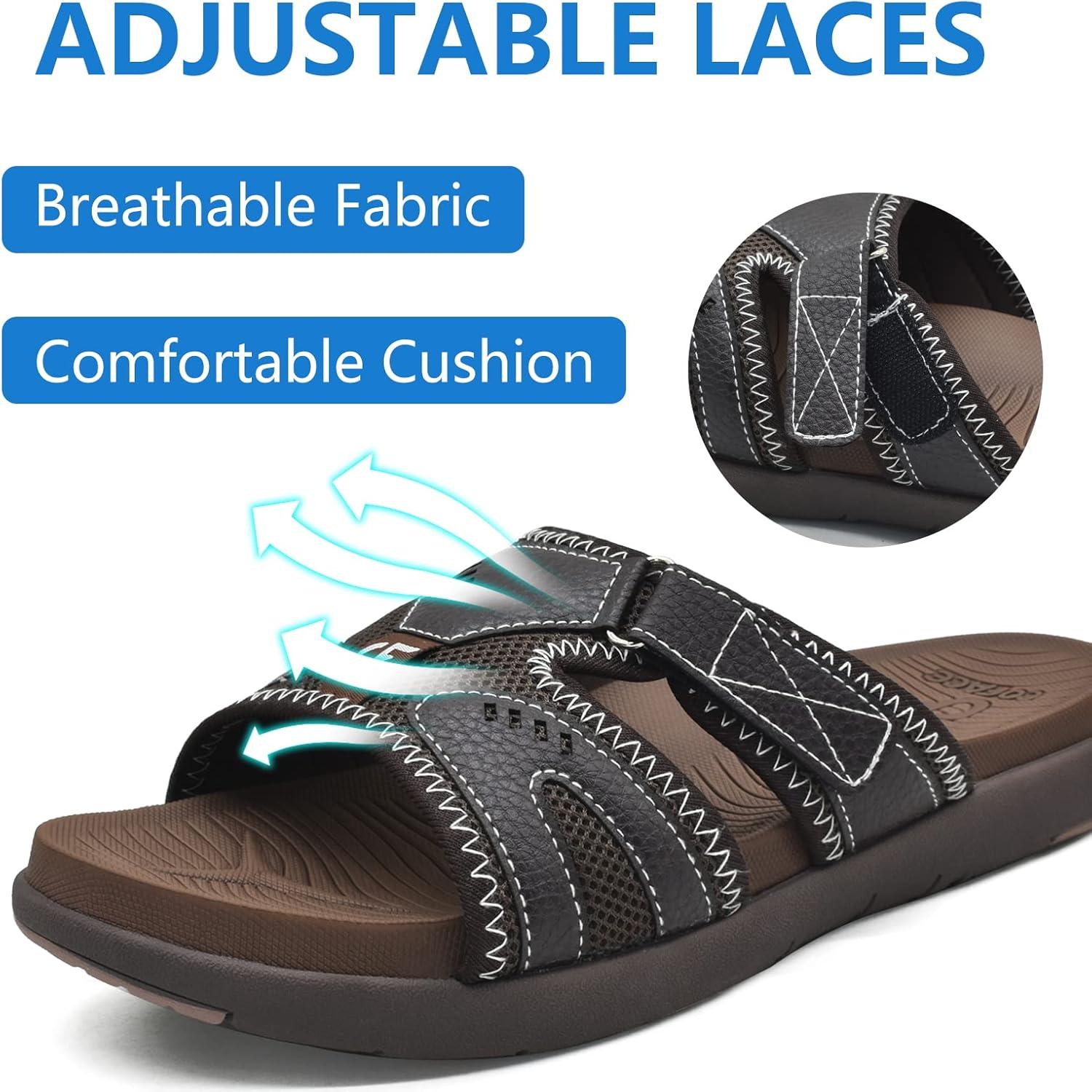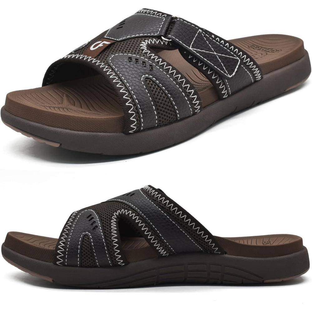 COFACE Mens Sport Recovery Sandals Plantar Fasciitis Soft Cushion Lightweight Orthotic Slides for Men(Brown)