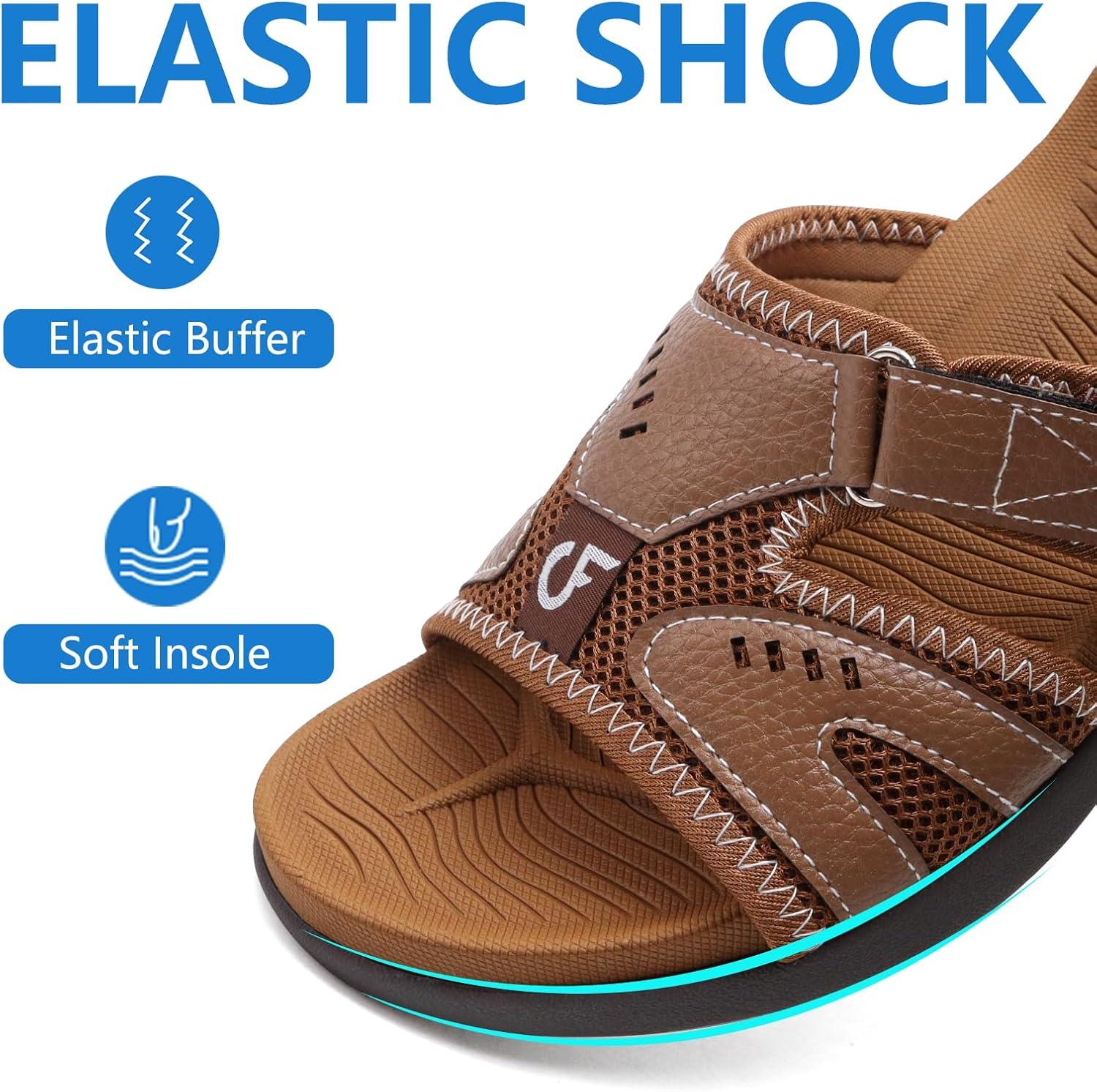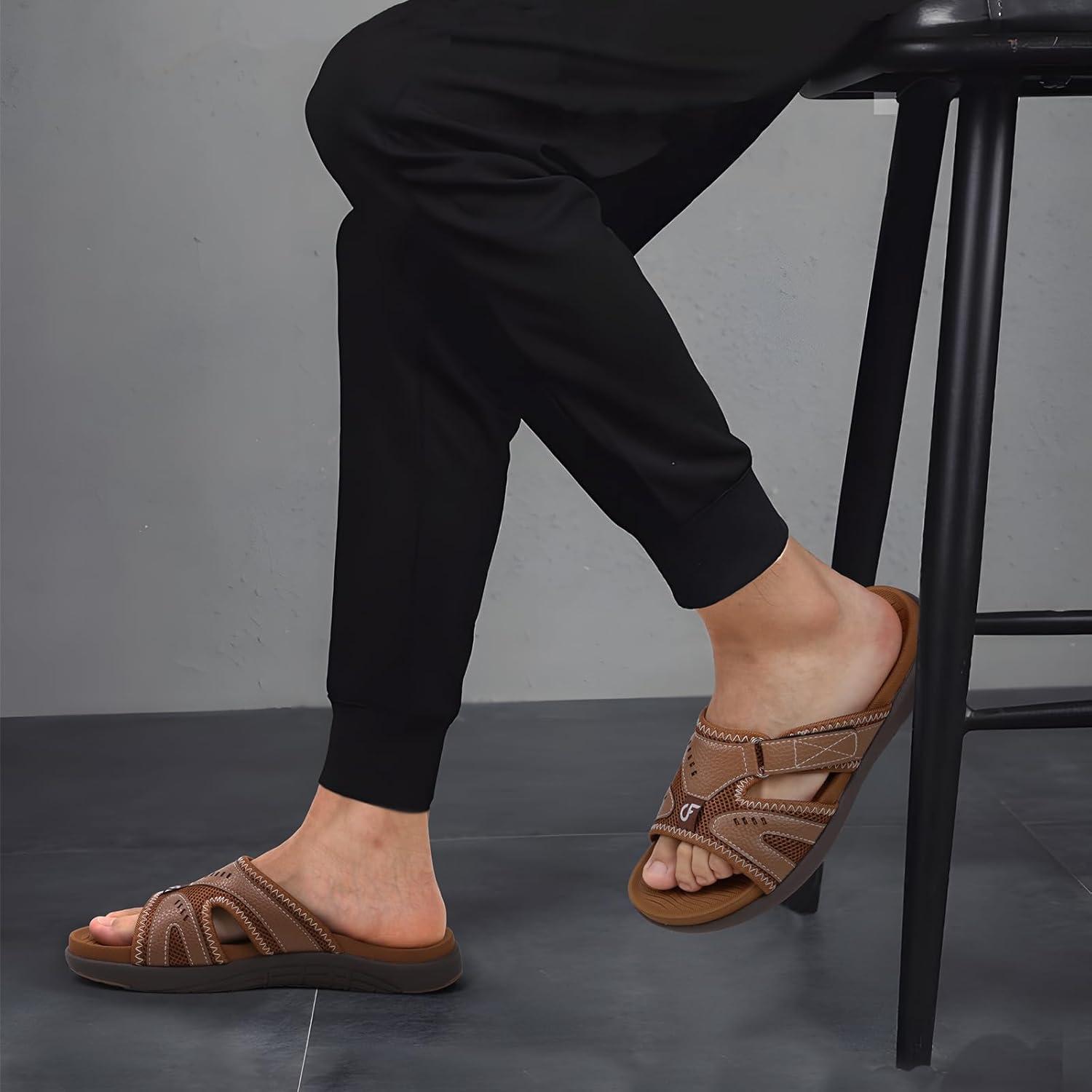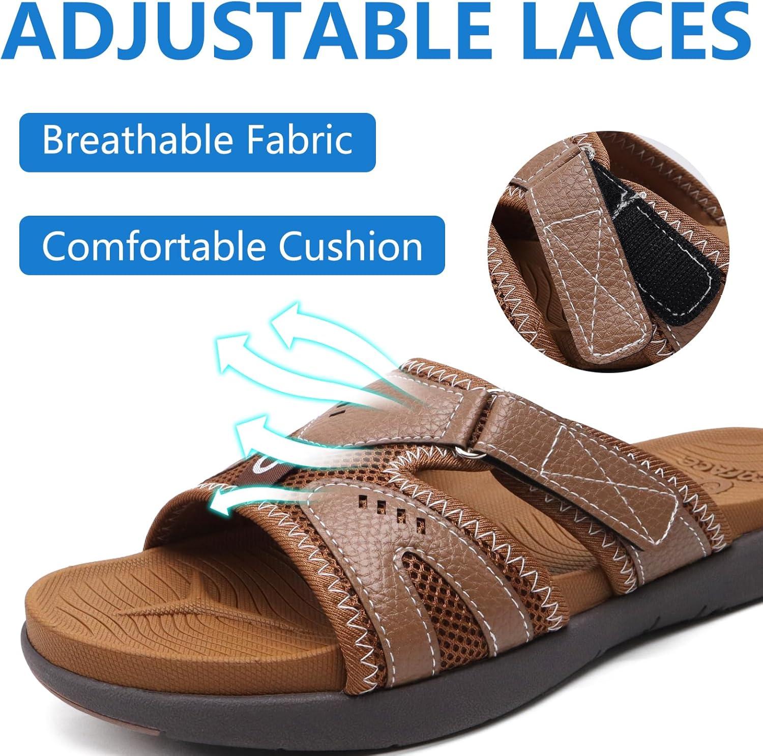 COFACE Mens Sport Recovery Sandals Plantar Fasciitis Soft Cushion Lightweight Orthotic Slides for Men(Brown)