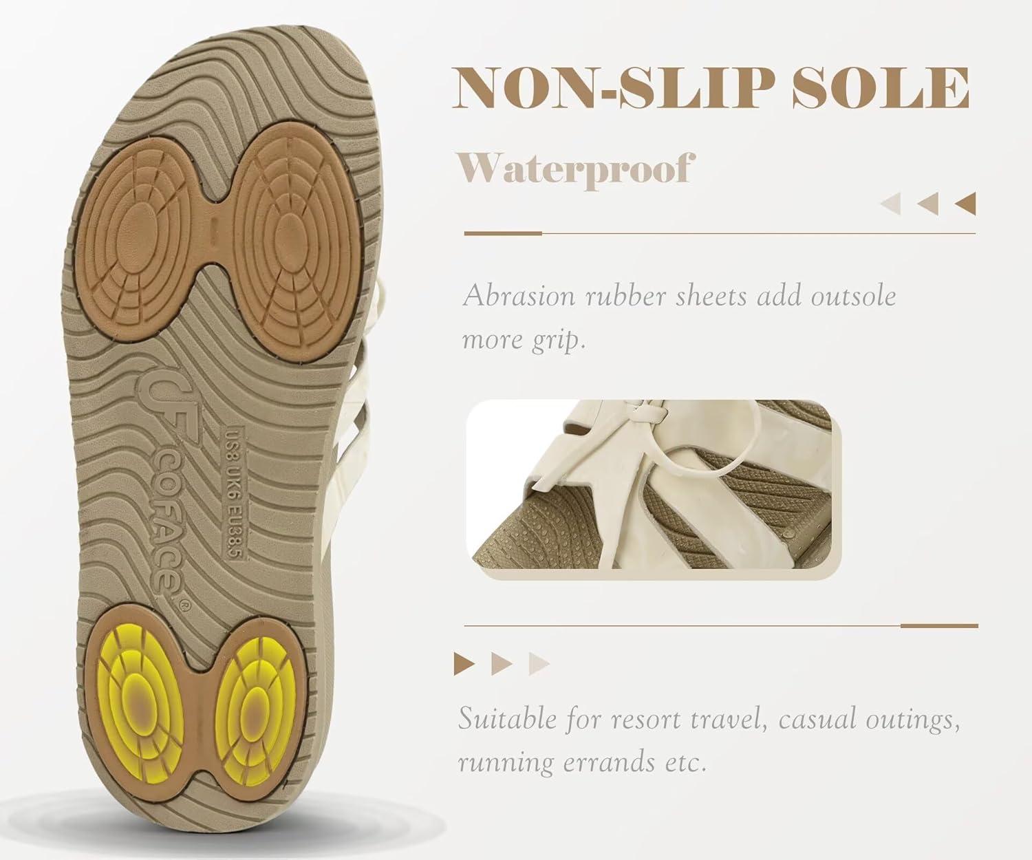 image:imageCOFACE Womens Trendy Orthopedic Walking Sandals Comfortable Plantar Fasciitis Arch Support Sport Recovery Outdoor Hiking Sandles Thick Athletic Cushion Adjustable Strap Platform Flip FlopsWhite Khaki