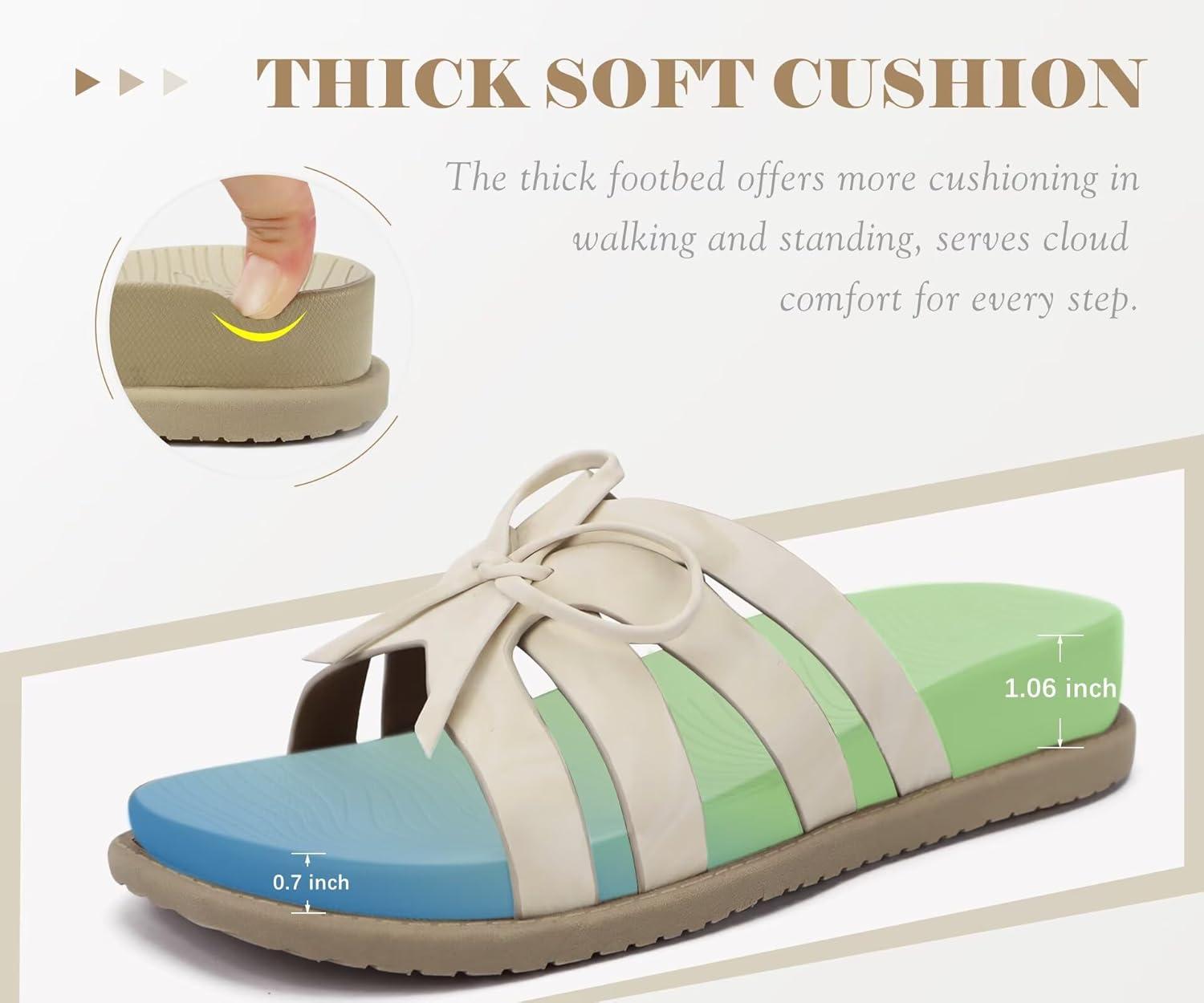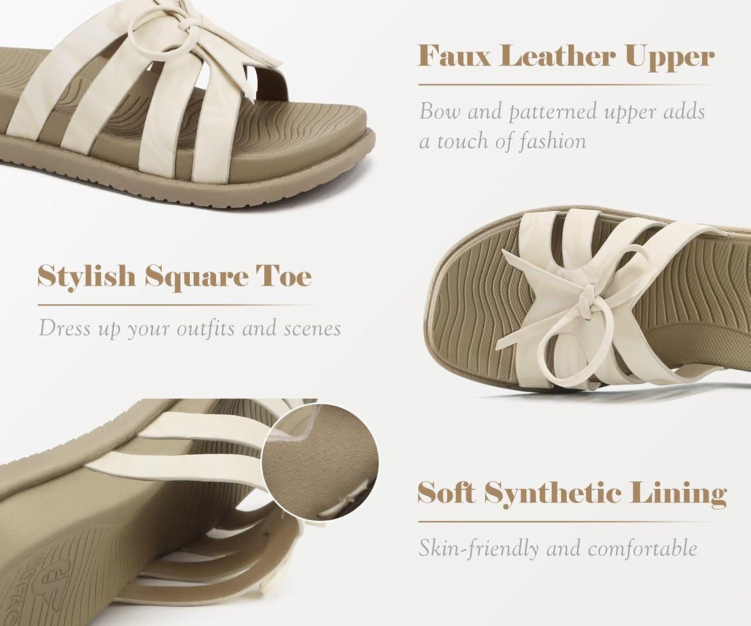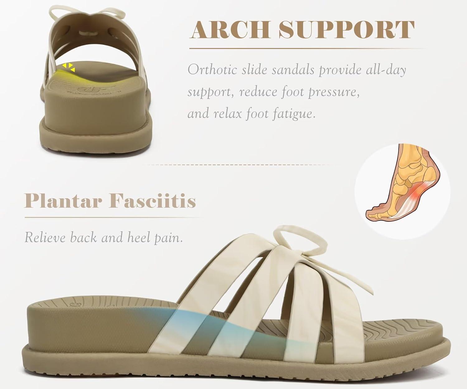 COFACE Womens Dressy Orthotic Sandals Trendy Square Toe Comfortable Thick Athletic Cushion Recovery Walking Slides Lightweight Yoga Foam Flat with Plantar Fasciitis Arch Support(Beige)