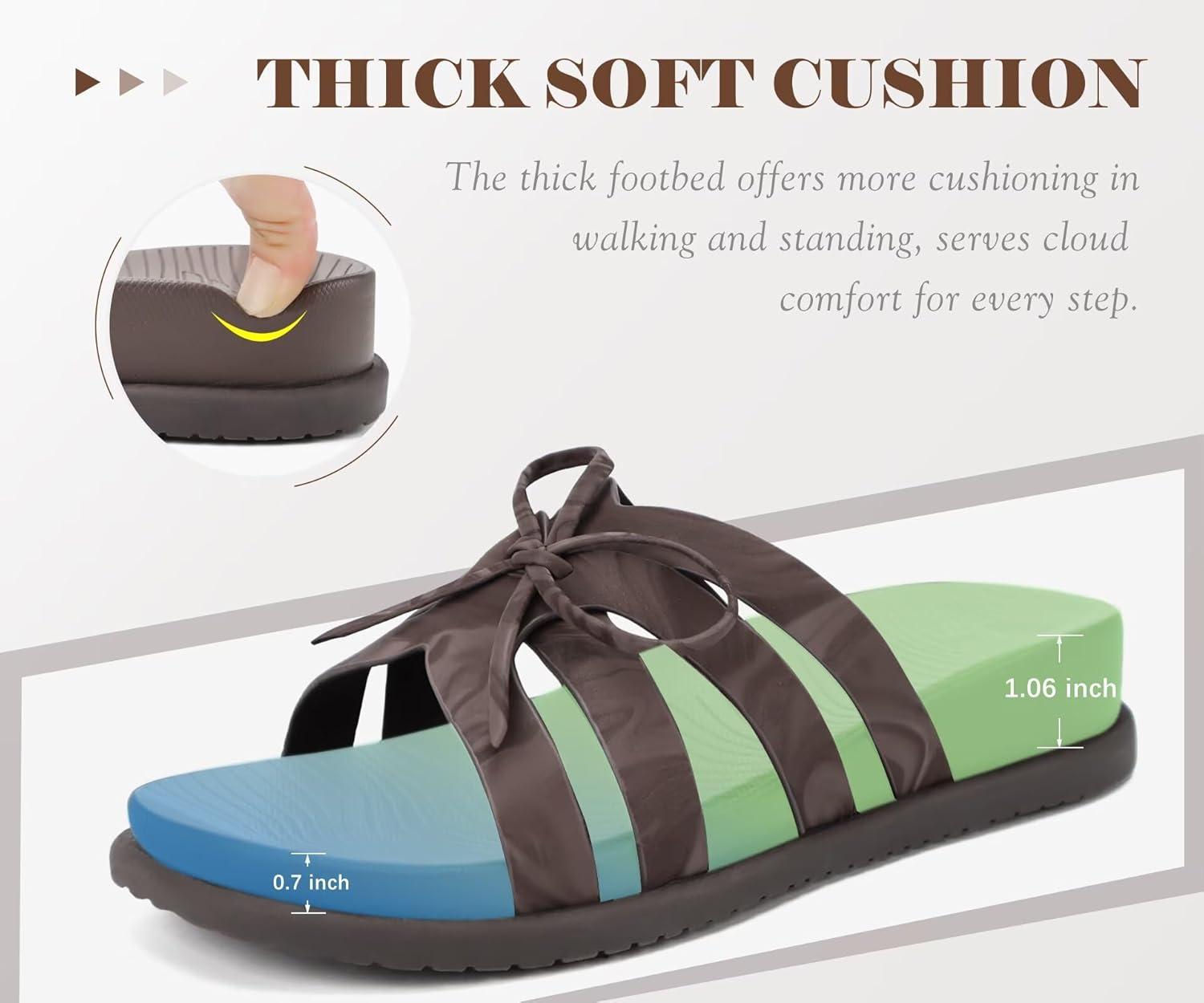 image:imageCOFACE Womens Dressy Orthotic Sandals Trendy Square Toe Comfortable Thick Athletic Cushion Recovery Walking Slides Lightweight Yoga Foam Flat with Plantar Fasciitis Arch SupportGreen
