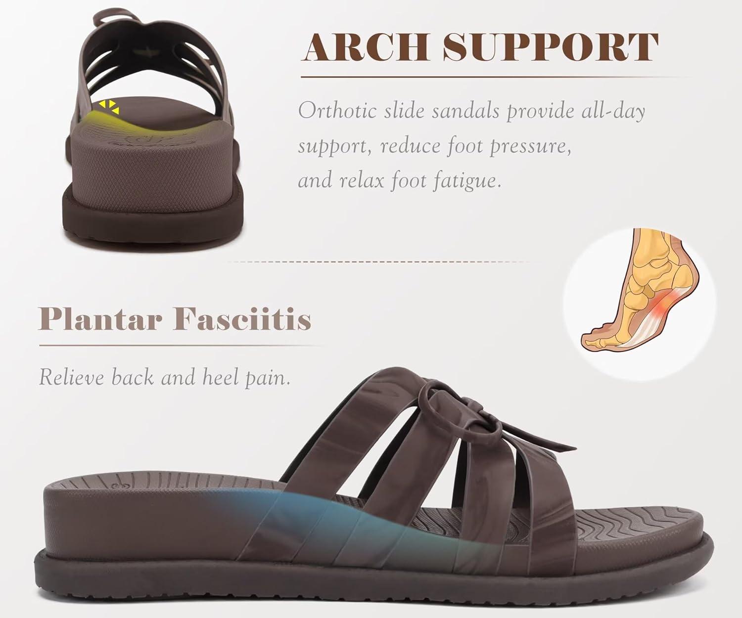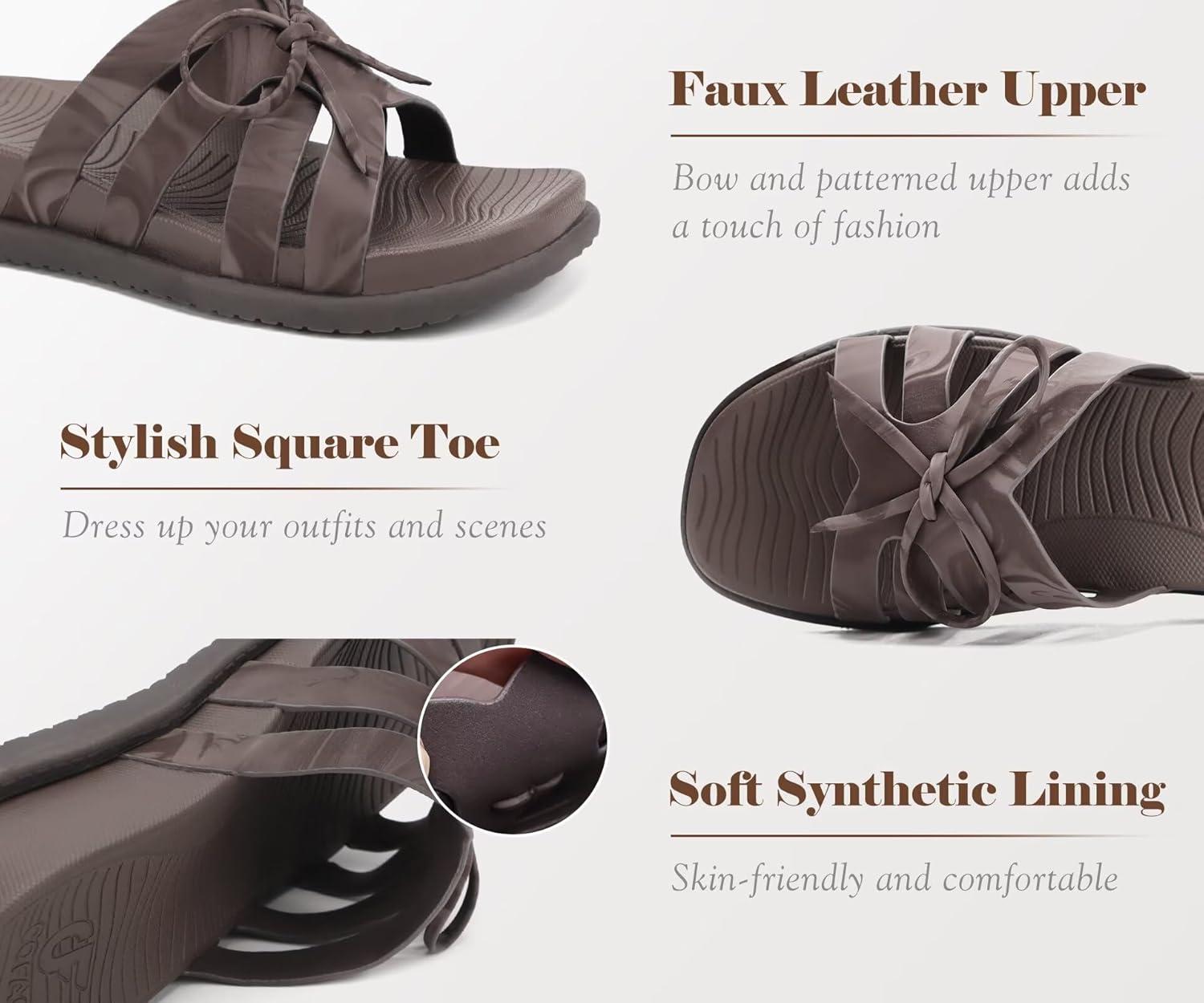 COFACE Womens Dressy Orthotic Sandals Trendy Square Toe Comfortable Thick Athletic Cushion Recovery Walking Slides Lightweight Yoga Foam Flat with Plantar Fasciitis Arch Support(Brown)