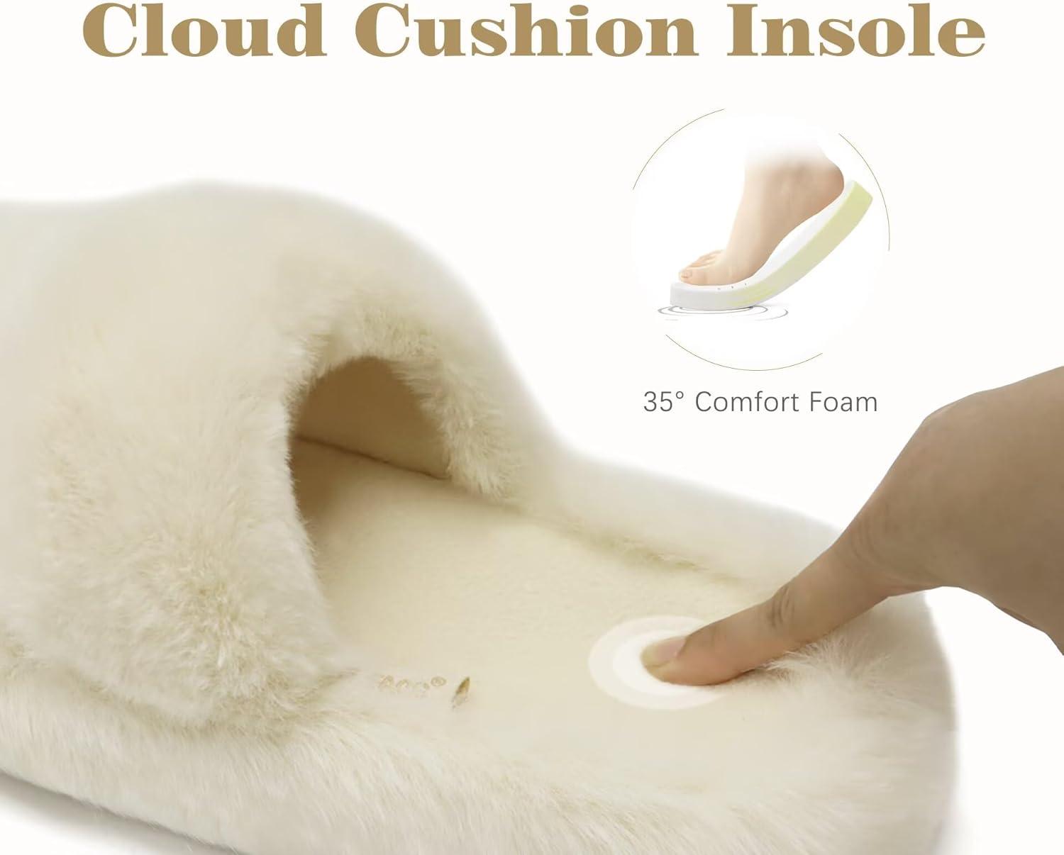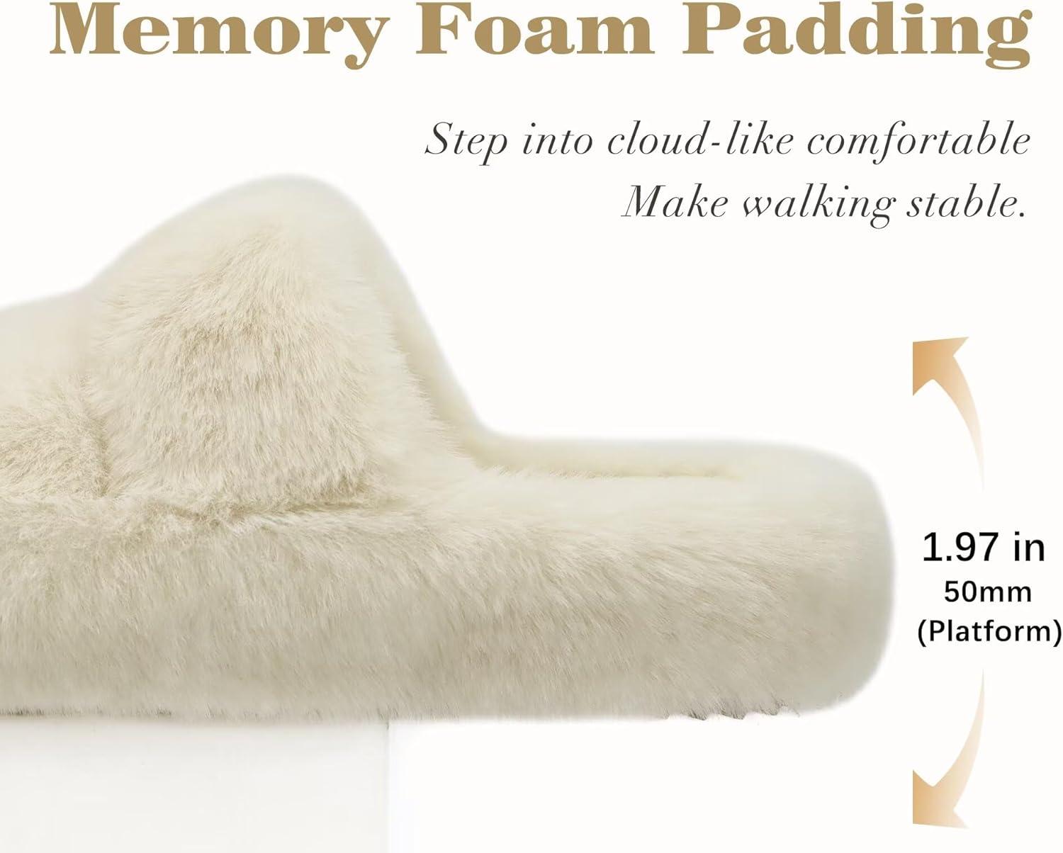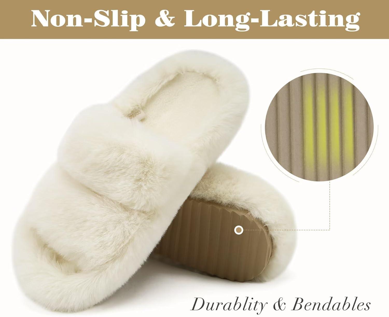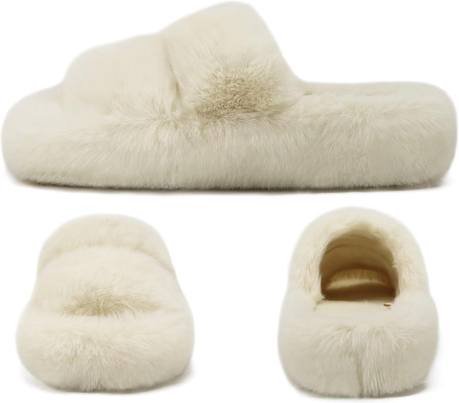 COFACE Women’s Fuzzy Slippers Memory Foam Open Toe Slip On House Shoes Size 5-11(Beige)