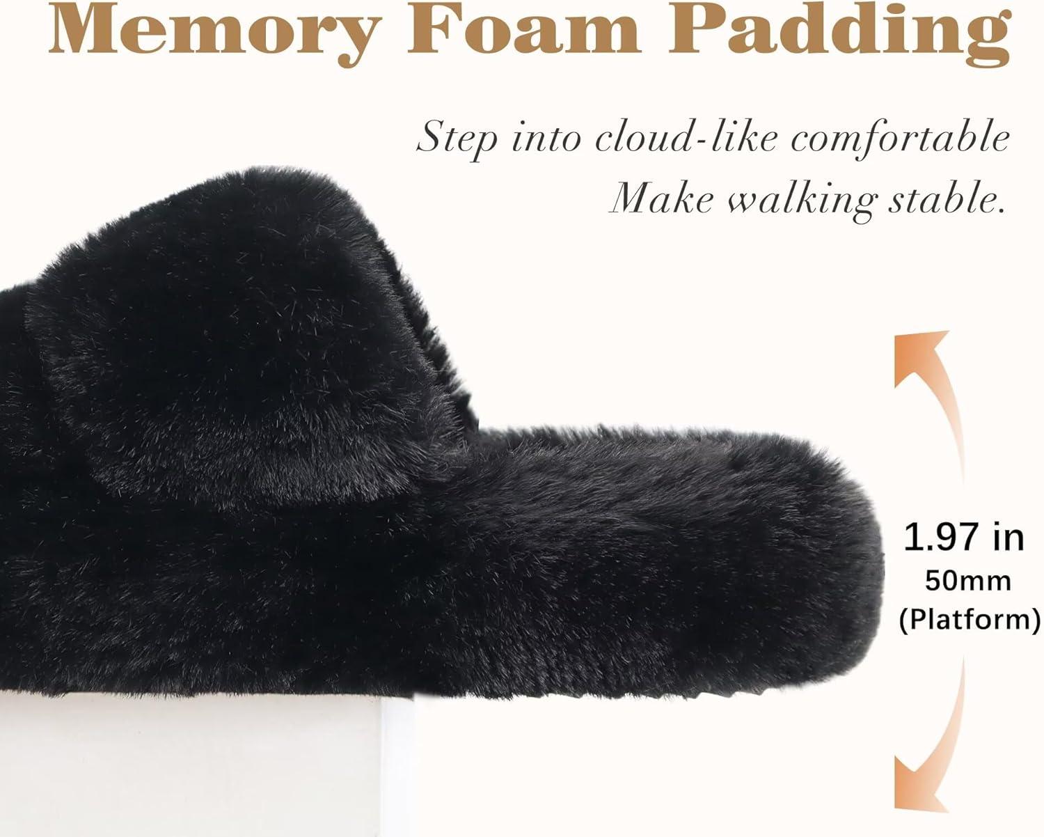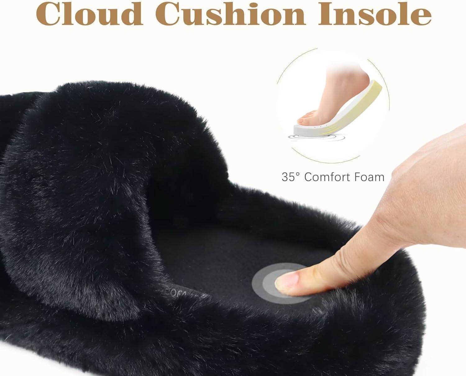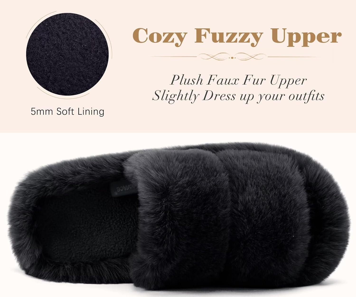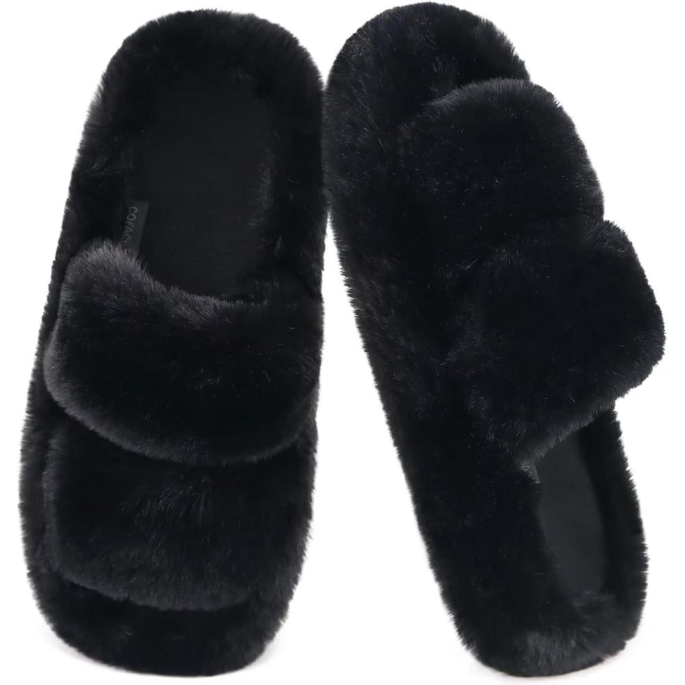 COFACE Women’s Fuzzy Slippers Memory Foam Open Toe Slip On House Shoes Size 5-11(Black)