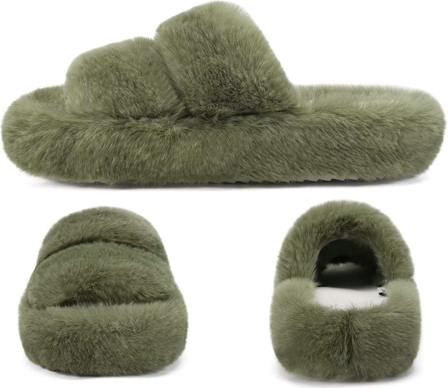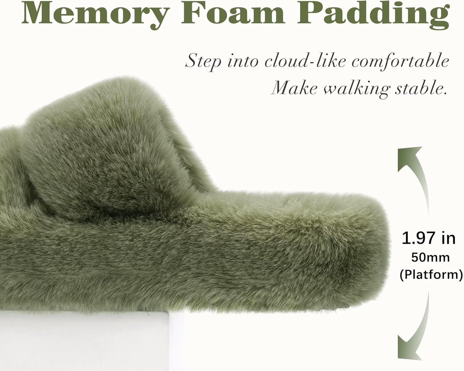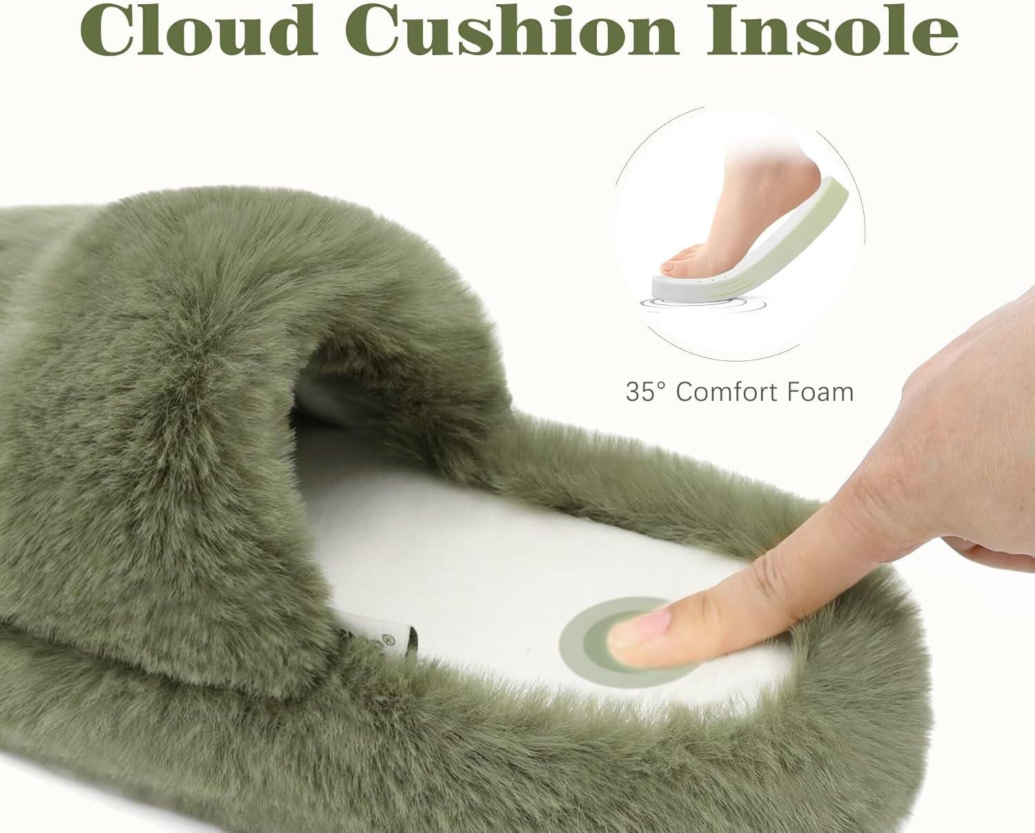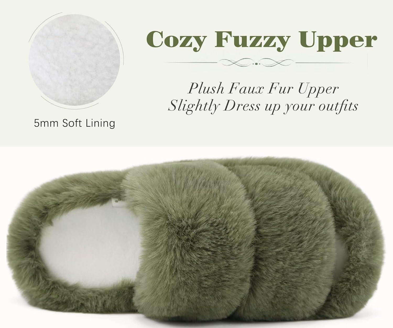 COFACE Women’s Fuzzy Slippers Memory Foam Open Toe Slip On House Shoes Size 5-11(Green)