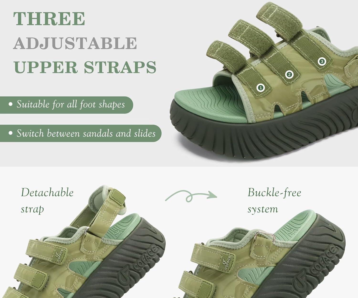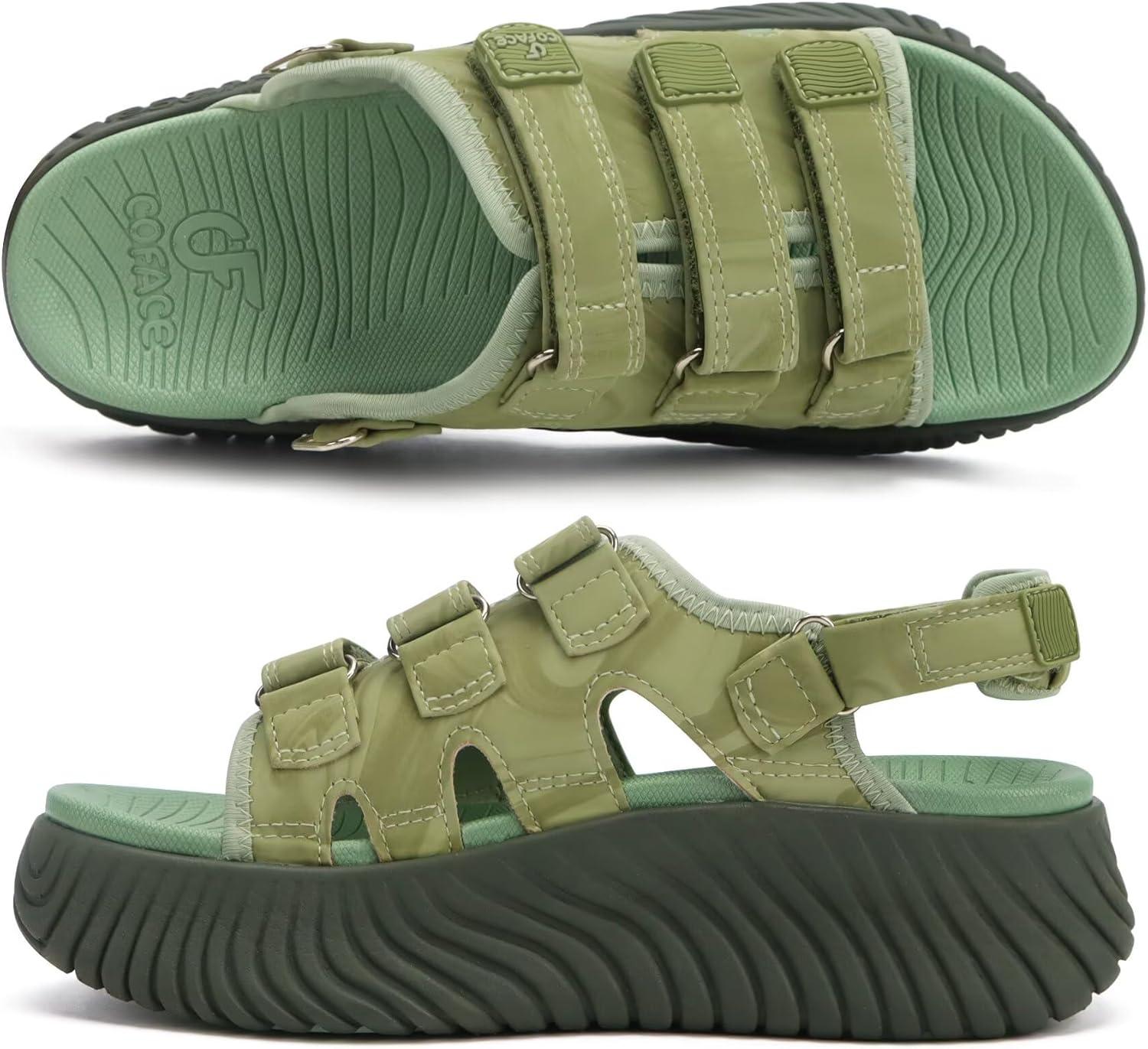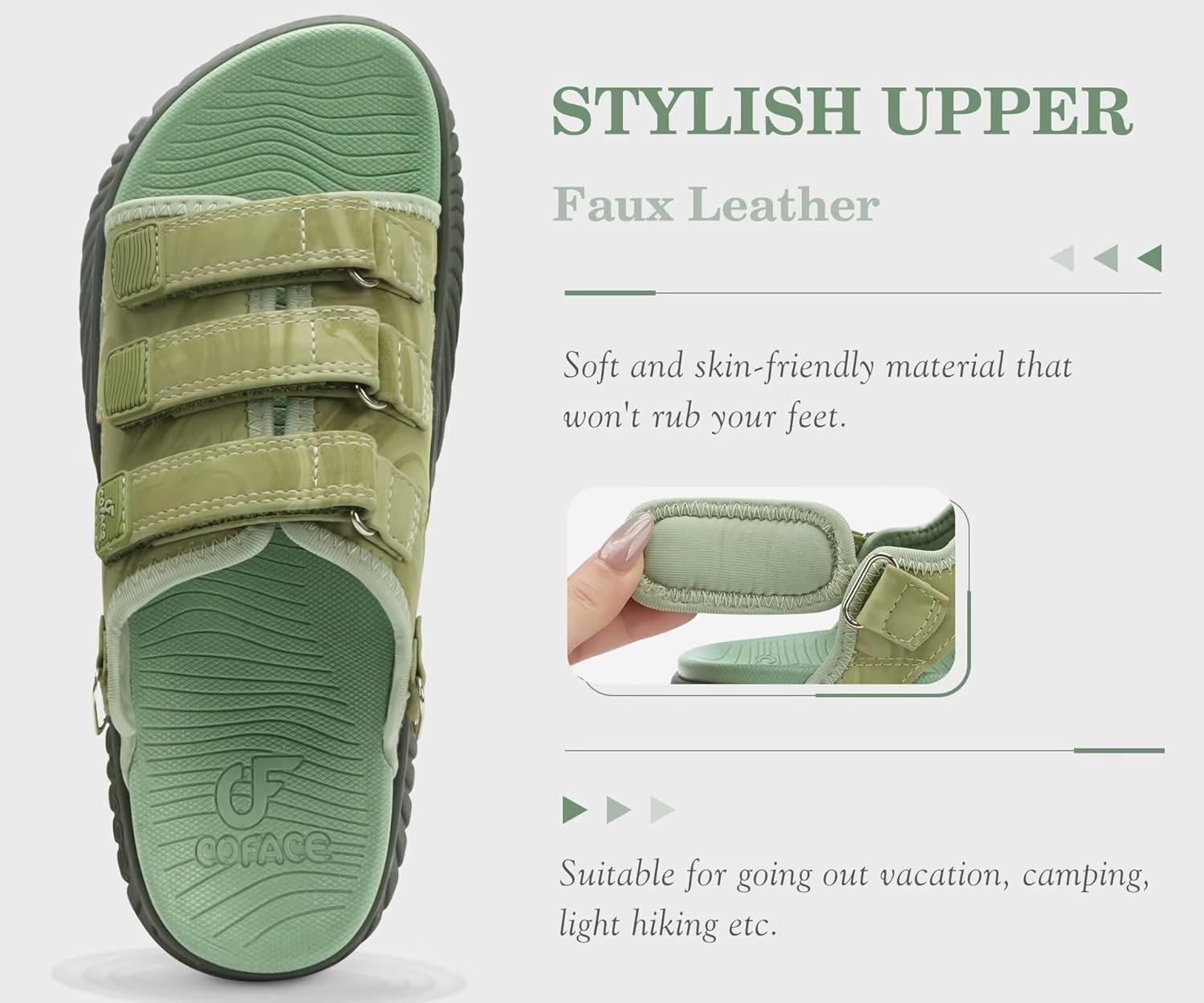 COFACE Womens Orthopedic Walking Sandals Comfortable Plantar Fasciitis Arch Support Sport Recovery Outdoor Hiking Sandles Thick Athletic Cushion Adjustable Strap Lightweight Platform Slides(Green)