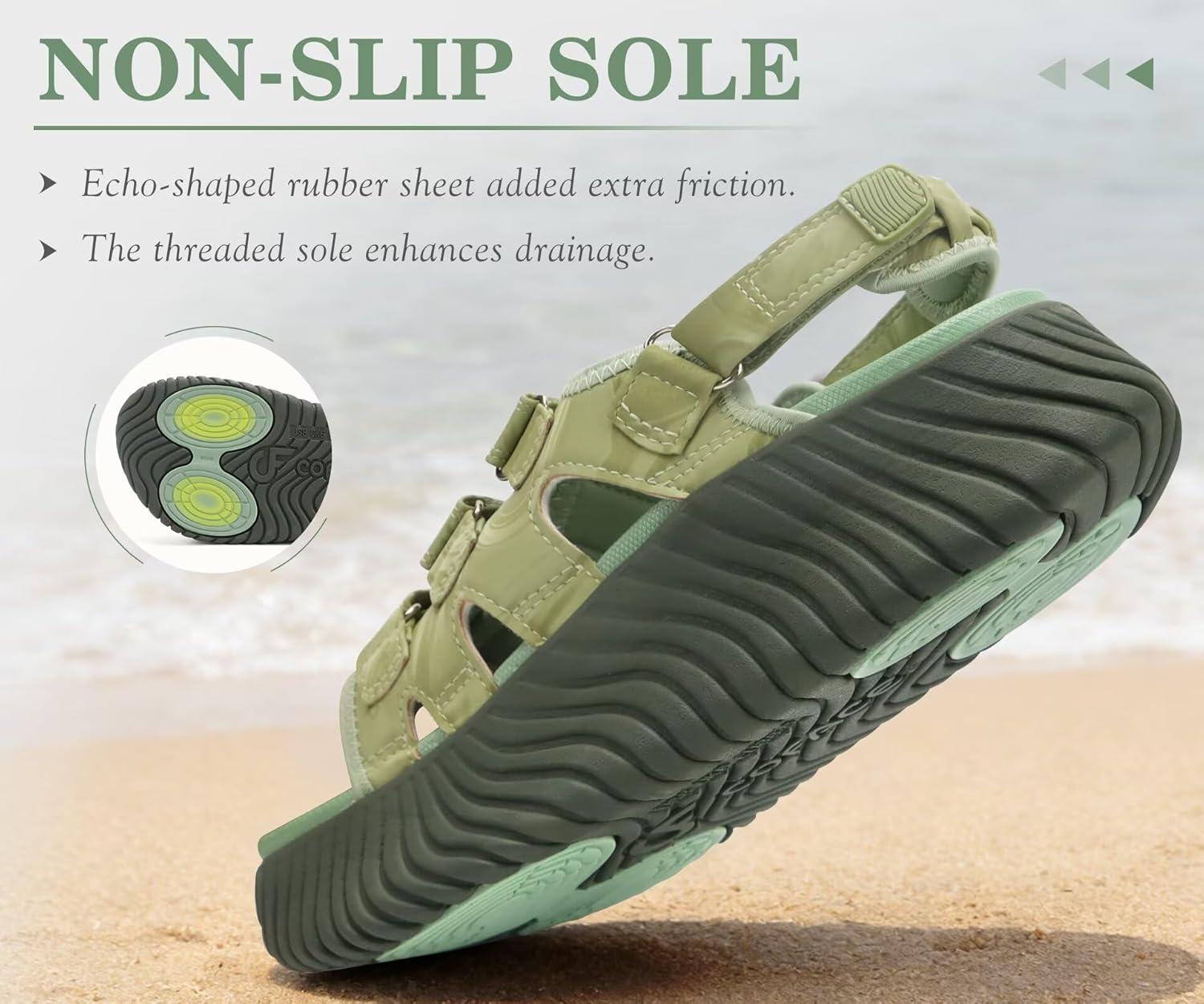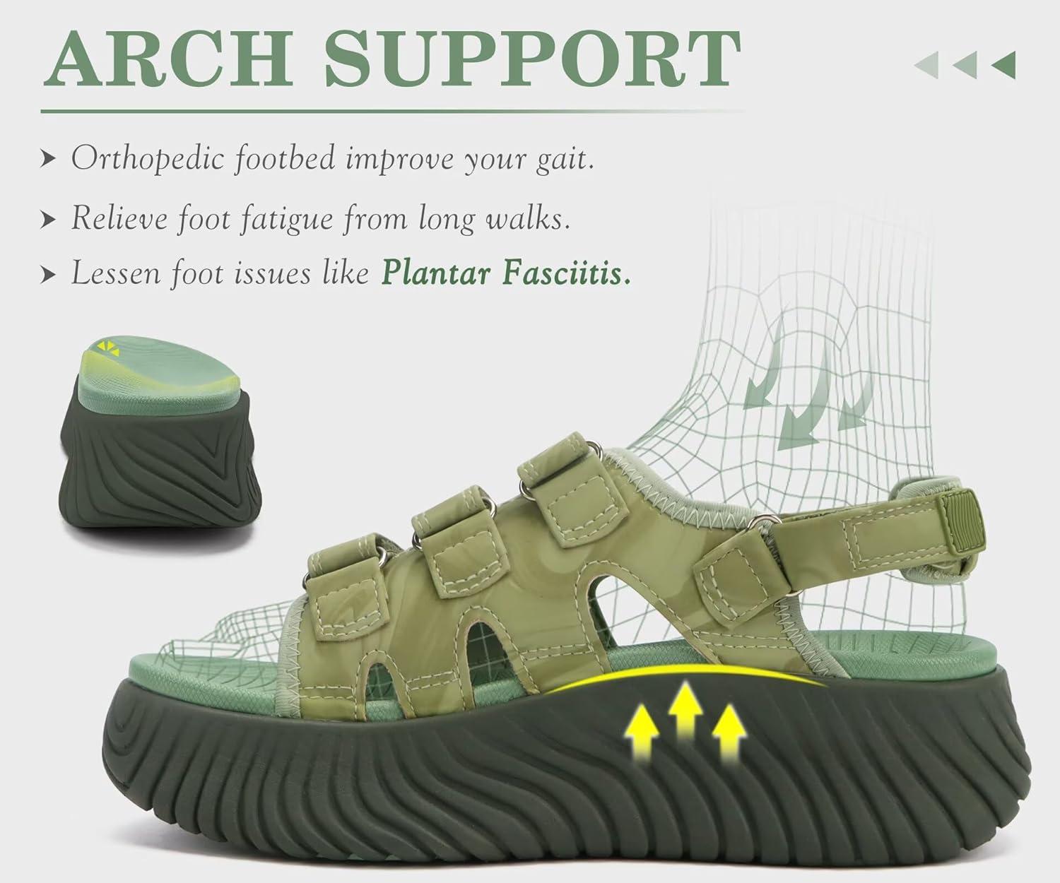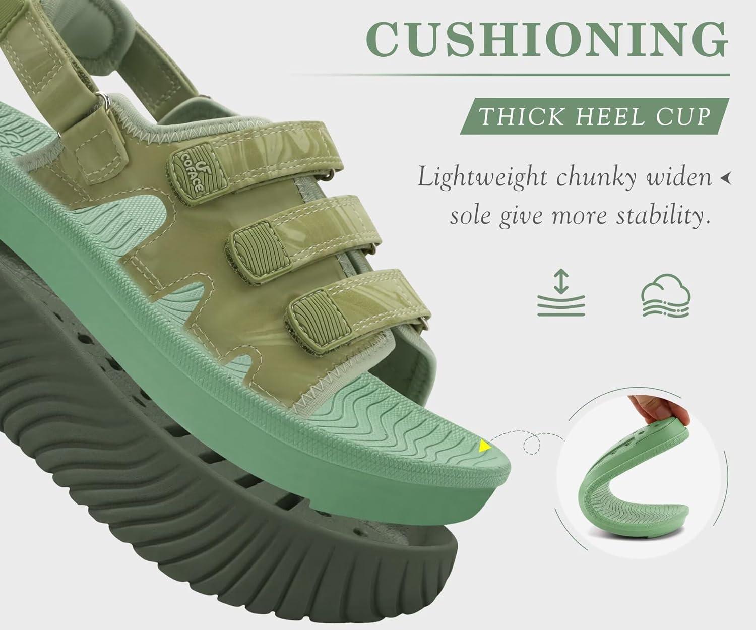 COFACE Womens Orthopedic Walking Sandals Comfortable Plantar Fasciitis Arch Support Sport Recovery Outdoor Hiking Sandles Thick Athletic Cushion Adjustable Strap Lightweight Platform Slides(Green)